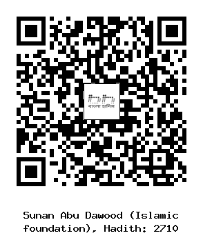 ২৭১০. আহমদ ইবন মুহাম্মদ ইবন হাম্বল (রহঃ) ..... ’আওফ ইবন মালিক আশজা’ঈ (রাঃ) থেকে বর্ণিত। তিনি বলেনঃ আমি যায়দ ইবন হারিছা (রাঃ) এর সঙ্গে মূতার যুদ্ধে অংশগ্রহণ করি। এ সময় ইয়ামনে মাদাদী নামক গোত্রের জনৈক ব্যক্তি আমার সাথী হয়, যার কাছে একখানি তরবারি ছাড়া আর কিছুই ছিল না। তখন একজন মুসলিম একটি উট যবাহ্ করে, যা থেকে মাদাদী লোকটি কিছু চামড়া চায় এবং সেও তাকে কিছু চামড়া দেয়। তখন সে তা দিয়ে একটা বিশেষ ধরণের ঢাল তৈরী করে অতঃপর আমরা চলতে থাকি এবং রোমক সৈন্যদের সামনাসামনি হই। তাদের জনৈক যোদ্ধা একটা লাল বর্ণের ঘোড়ার উপর সওয়ার ছিল এবং জিন ছিল সোনালী বর্ণের এবং তার হাতিয়ারও ছিল স্বর্ণখচিত। সে রোমীয় সৈন্যটি মুসলমাদের উপর খুবই আক্রমণ চালাচ্ছিল।