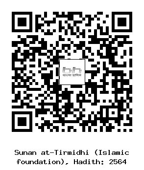 ২৫৬৪. সুওয়াদ ইবন নাসর (রহঃ) ...... আবূ সাঈদ খুদরী (রাঃ) থেকে বর্ণিত। তিনি বলেনঃ রাসূলুল্লাহ্ সাল্লাল্লাহু আলাইহি ওয়াসাল্লাম বলেছেনঃ জান্নাতীদের মাঝে সর্বনিম্ন যে তারও হবে আশি হাজার সেবক, বাহাত্তর হাজার সঙ্গিনী। মোতী, যবরজদ এবং ইয়াকূত পাথরে নির্মিত জাবিয়া থেকে সান’আ পর্যন্ত দূরত্বের ন্যায় বিস্তৃত এক বিরাট গুম্বজ বিশিষ্ট প্রাসাদ তার জন্য প্রতিষ্ঠা করা হবে। যঈফ, যঈফ মিশকাত ৫৬৪৮, যঈফ জামি’ সাগীর ২৬৬, তিরমিজী হাদিস নম্বরঃ ২৫৬২ [আল মাদানী প্রকাশনী]