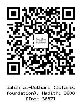 ৩৬০৮। হুদবা ইবনু খালিদ (রহঃ) ... মালিক ইবনু সা’সা (রাঃ) থেকে বর্ণিত, আল্লাহর নবী সাল্লাল্লাহু আলাইহি ওয়াসাল্লাম কে যে রাতে তাঁকে ভ্রমণ করানো হয়েছে সে রাতের ঘটনা বর্ণনা করতে গিয়ে বলেন, একদা আমি কা’বা ঘরের হাতিমের অংশে ছিলাম। কখনো কখনো রাবী (কাতাদা) বলেছেন, হিজরে শুয়েছিলাম। হঠাৎ একজন আগন্তুক আমার নিকট এলেন এবং আমার এ স্থান থেকে সে স্থানের মধ্যবর্তী অংশটি চিরে ফেললেন। রাবী কাতাদা বলেন, আনাস (রাঃ) কখনো কাদ্দা (চিরলেন) শব্দ আবার কখনো শাক্কা (বিদীর্ণ) শব্দ বলেছেন। রাবী বলেন, আমি আমার পার্শ্বে বসা জারূদ (রহঃ) কে জিজ্ঞেস করলাম, এ দ্বারা কী বুঝিয়েছেন? তিনি বললেন, হলকুমের নিম্নদেশ থেকে নাভী পর্যন্ত। কাতাদা (রহঃ) বলেন, আমি আনাস (রাঃ) কে এ-ও বলতে শুনেছি বুকের উপরিভাগ থেকে নাভির নিচ পর্যন্ত। তারপর (নবী সাল্লাল্লাহু আলাইহি ওয়াসাল্লাম বলেন) আগন্তুক আমার হৃদপিণ্ড বের করলেন। তারপর আমার নিকট একটি স্বর্ণের পাত্র আনা হল যা ঈমানে পরিপূর্ণ ছিল। তারপর আমার হৃদপিণ্ডটি (যমযমের পানি দ্বারা) ধৌত করা হল এবং ঈমান দ্বারা পরিপূর্ণ করে যথাস্থানে পুনরায় রেখে দেয়া হল।