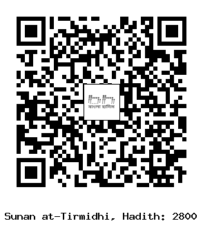 ২৮০০। ইবনু উমর (রাঃ) হতে বর্ণিত আছে, রাসূলুল্লাহ সাল্লাল্লাহু আলাইহি ওয়াসাল্লাম বলেনঃ তোমরা নগ্নতা হতে বেঁচে থাক। কেননা তোমাদের এমন সঙ্গী আছেন (কিরামান-কাতিবীন) যারা পেশাব-পায়খানা ও স্বামী-স্ত্রীর সহবাসের সময় ছাড়া অন্য কোন সময় তোমাদের হতে আলাদা হন না। সুতরাং তাদের লজ্জা কর এবং সম্মান কর।
