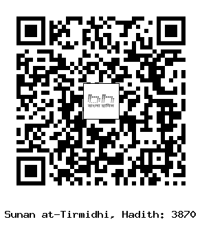 ৩৮৭০। যাইদ ইবনু আরকাম (রাঃ) হতে বর্ণিত আছে, রাসূলুল্লাহ সাল্লাল্লাহু আলাইহি ওয়াসাল্লাম আলী, ফাতিমা, হাসান ও হুসাইন (রাঃ)-কে উদ্দেশ্য করে বলেনঃ তোমরা যাদের বিরুদ্ধে যুদ্ধ করবে আমিও তাদের বিপক্ষে লড়াই করব এবং তোমরা যাদের সাথে শান্তি স্থাপন করবে আমিও তাদের সাথে শান্তি স্থাপন করব।