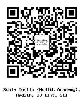 ৩৩-(৩৩/২১) আবূ তাহির ও হারমালাহ ইবনু ইয়াহইয়া ও আহমাদ ইবনু ঈসা (রহঃ) ..... আবূ হুরাইরাহ (রাযিঃ) থেকে বর্ণনা করেন যে, রাসূলুল্লাহ সাল্লাল্লাহু আলাইহি ওয়া সাল্লাম বলেছেন, "আল্লাহ ছাড়া প্রকৃত কোন ইলাহ নেই- এ কথার স্বীকৃতি না দেয়া পর্যন্ত লোকদের বিরুদ্ধে যুদ্ধ করতে আমি আদিষ্ট হয়েছি। সুতরাং যে কেউ "আল্লাহ ছাড়া প্রকৃত কোন ইলাহ নেই স্বীকার করবে সে আমা হতে তার জান মালের নিরাপত্তা লাভ করবে; তবে শারীআত সম্মত কারণ ব্যতীত। আর তার হিসাব-নিকাশ আল্লাহর কাছে। (ইসলামিক ফাউন্ডেশনঃ ৩৩, ইসলামিক সেন্টারঃ ৩৩)