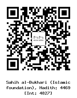 ৪৪৬৯। মূসা ইবনু ইসমাঈল ... ইউসুফ ইবনু মাহাক (রহঃ) থেকে বর্ণিত। তিনি বলেন, মারওয়ান ছিলেন হিজাযের গভর্নর। তাকে নিয়োগ করেছিলেন মু’আবিয়া (রাঃ)। তিনি একদা খুতবা দিলেন এবং তাতে ইয়াযীদ ইবনু মু’আবিয়ার কথা বারবার উল্লেখ করতে লাগলেন, যেন তাঁর পিতার ইন্তেকালের পর তার বায়আত গ্রহন করা হয়। এ সময় তাকে আবদুর রহমান ইবনু আবূ বকর কিছু কথা বললেন, মারওয়ান বললেন, তাঁকে পাকড়াও কর। তৎক্ষণাৎ তিনি আয়িশা (রাঃ) এর ঘরে চলে গেলেন। তারা তাঁকে ধরতে পারল না। তারপর মারওয়ান বললেন, এ তো সেই ব্যাক্তি যার সম্বন্ধে আল্লাহ নাযিল করেছেন, “আর এমন লোক আছে যে, মাতাপিতাকে বলে, তোমাদের জন্য আফসোস! তোমরা কি আমাকে এ ভয় দেখাতে চাও যে, আমি পুনরুত্থিত হব যদিও আমার পূর্বে বহু পুরুষ গত হয়েছে, তখন তার মাতাপিতা আল্লাহর নিকট ফরিয়াদ করে বলে, দুর্ভোগ তোমার জন্য। বিশ্বাস স্থাপন কর, আল্লাহর প্রতিশ্রুতি অবশ্যই সত্য। কিন্তু সে বলে এ তো অতীতকালের উপকথা ব্যতীত কিছুই নয়।”