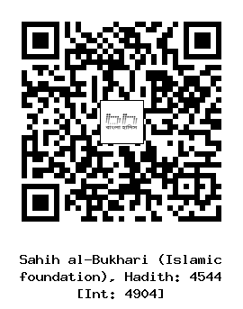 ৪৫৪৪। উবায়দুল্লাহ ইবনু মূসা (রহঃ) ... যাইদ ইবনু আরকাম (রাঃ) হতে বর্ণিত। তিনি বলেন, আমি আমার চাচার সাথে ছিলাম। তখন আবদুল্লাহ ইবনু উবাই ইবনু সালূলকে বলতে শুনলাম, “আল্লাহর রাসূল সাল্লাল্লাহু আলাইহি ওয়াসাল্লাম এর সহচরদের জন্য তোমরা ব্যয় করবে না, যতক্ষণ না তারা তাঁর থেকে সরে পড়ে” এবং “আমরা মদিনায় প্রত্যাবর্তন করলে তথা হতে প্রবল লোকেরা দুর্বল লোকদের বহিষ্কৃত করবেই”। এ কথা আমি আমার চাচার কাছে বলে দিলাম। তিনি তা নবী সাল্লাল্লাহু আলাইহি ওয়াসাল্লাম কে বললেন। নবী সাল্লাল্লাহু আলাইহি ওয়াসাল্লাম আমাকে ডাকলেন। আমি তাঁকে বিস্তারিত সব বললাম। তখন তিনি আবদুল্লাহ ইবনু উবাই এবং তার সাথীদেরকে ডেকে পাঠালেন। তারা সকলেই কসম করে বলল, এই কথা তারা বলেনি। ফলে রাসূল সাল্লাল্লাহু আলাইহি ওয়াসাল্লাম আমার কথাকে মিথ্যা ও তাদের কথাকে সত্য বলে মেনে নিলেন। এতে আমি এমন কষ্ট পেলাম যা আগে কখনো পাইনি। এরপর আমি ঘরে বসে ছিলাম। তখন আমার চাচা আমাকে বললেন, এমন কাজের চিন্তা কেন করলে, যাতে নবী তোমাকে মিথ্যাবাদী সাব্যস্ত করেছেন এবং তোমার প্রতি অসন্তুষ্ট হয়েছেন? তখন আল্লাহ নাযিল করলেন- “যখন মুনাফিকগণ আপনার কাছে আসে তখন তারা বলে, আমরা সাক্ষ্য দিচ্ছি যে, আপনি নিশ্চয়ই আল্লাহর রাসূল”। এরপর নবী সাল্লাল্লাহু আলাইহি ওয়াসাল্লাম আমার কাছে লোক পাঠালেন এবং আমার সামনে এ সূরা পাঠ করলেন ও বললেন, আল্লাহ তোমাকে সত্যবাদী বলে ঘোষণা দিয়েছেন।