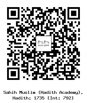 ১৭৩৫-(.../...) ইয়াহইয়া ইবনু আইয়ুব, কুতায়বাহ ইবনু সাঈদ ও ইবনু হুজুর (রহঃ) ..... আবূ হুরায়রাহ (রাযিঃ) থেকে বর্ণিত। নবী সাল্লাল্লাহু আলাইহি ওয়াসাল্লাম থেকে ইয়াহইয়া ইবনু কাসীর বর্ণিত হাদীসের অনুরূপ হাদীস বর্ণনা করেছেন। তবে পার্থক্য এতটুকু যে, ইয়াহইয়া ইবনু আইয়ুব তার বর্ণনাতেكَإِذْنِهِ এ শব্দটা অতিরিক্ত বর্ণনা করেছেন। (ইসলামী ফাউন্ডেশন ১৭২০, ইসলামীক সেন্টার ১৭২৭)