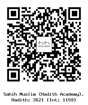 ২৬২১-(১৮৩/...) যুহায়র ইবনু হাব (রহঃ) ..... ইয়াহইয়া ইবনু আবূ কাসীর (রহঃ) কর্তৃক এ সানাদে উপরের হাদীসের অনুরূপ বর্ণিত হয়েছে। তবে এ সূত্রে প্রতি মাসে তিনদিন করে সিয়াম (রোজা/রোযা) পালন করাই যথেষ্ট’- এ কথার পরে আরো আছে, “কেননা প্রত্যেক নেক কাজের বিনিময়ে তার দশগুণ সাওয়াব পাওয়া যায়, আর এভাবে তা সারা বছরের সিয়ামের সমতুল্য গণ্য হয়”। তিনি তার বর্ণিত হাদীসে আরো উল্লেখ করেছেন, “আমি বললাম, আল্লাহর নবী দাউদ (আঃ) এর সিয়াম কী (ছিল)? তিনি বললেন, বছরের অর্ধেক (অর্থাৎ একদিন সিয়াম পালন করা ও একদিন সিয়াম ভাঙ্গা)। তিনি (এ হাদীসে) কুরআন তিলাওয়াতের প্রসঙ্গে কিছুই উল্লেখ করেননি। এ বর্ণনায় তিনি “তোমার সাক্ষাত-প্রার্থীদেরও তোমার উপর হাক্ব (হক) আছে"- এ কথাটি উল্লেখ করেননি। বরং এতে আছেঃ তোমার সন্তানেরও তোমার উপর হাক্ব (হক) আছে। (ইসলামিক ফাউন্ডেশন ২৫৯৮, ইসলামীক সেন্টার ২৫৯৭)