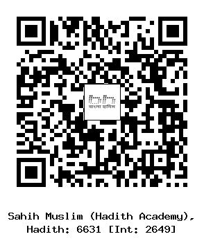 ৬৬৩১-(…/...) শাইবান ইবনু ফাররূখ, আবু বকর ইবনু আবূ শাইবাহ, যুহায়র ইবনু হারব, ইসহাক ইবনু ইবরাহীম, ইবনু নুমায়র, ইয়াহইয়া ইবনু ইয়াহইয়া ও ইবনুল মুসান্না (রহঃ) সব সানাদেই ইয়াযীদ আর রিশক (রহঃ) হতে এ সূত্রে হাম্মদ এর হাদীসের অর্থে হাদীস বর্ণনা করেছেন। আর এছাড়া আবদুল ওয়ারিস বর্ণিত হাদীসে রয়েছে, সে বলেছে, আমি বললাম, “হে আল্লাহর রসূল সাল্লাল্লাহু আলাইহি ওয়াসাল্লাম” (ইসলামিক ফাউন্ডেশন ৬৪৯৭, ইসলামিক সেন্টার ৬৫৪৮)