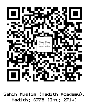 ৬৭৭৮-(৫৮/...) ইয়াহইয়া ইবনু ইয়াহইয়া (রহঃ) ..... বারা ইবনু ’আযিব (রাযিঃ) থেকে বর্ণিত। তিনি বলেন, রসূলুল্লাহ সাল্লাল্লাহু আলাইহি ওয়াসাল্লাম এক লোককে বললেন, ’হে অমুক যখন তুমি তোমার বিছানায় আশ্রয় গ্রহণ করবে। এরপর আমর ইবনু মুররাহ বর্ণিত হাদীসের অবিকল বর্ণনা করলেন। কিন্তু পার্থক্য এই যে, তিনি বলেছেন, “ওয়াবি নাবিয়্যিকাল্লায়ী আরসালতা" অর্থাৎ- “এবং আপনার সে নবীর উপর বিশ্বাস স্থাপন করেছি, যাকে আপনি প্রেরণ করেছেন।” যদি তুমি সে রাত্রে মৃত্যুবরণ করো তাহলে ফিতরাতের উপরই মৃত্যুবরণ করলে। আর যদি ভোরে উপনীত হও তবে তুমি কল্যাণপ্রাপ্ত হবে। (ইসলামিক ফাউন্ডেশন ৬৬৩৭, ইসলামিক সেন্টার ৬৬৯১)