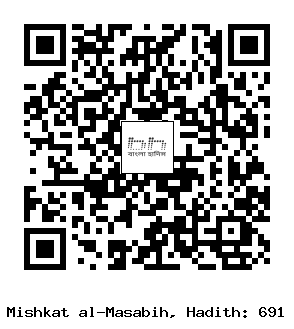 ৬৯১-[৩] ’আবদুল্লাহ ইবনু ’উমার (রাঃ) হতে বর্ণিত। তিনি বলেন, মক্কা বিজয়ের দিন রসূলুল্লাহ সাল্লাল্লাহু আলাইহি ওয়াসাল্লাম নিজে ও উসামাহ্ ইবনু যায়দ, ’উসমান ইবনু ত্বলহাহ্ (রাঃ) আল হাজাবী ও বিলাল ইবনু রাবাহ্ (রাঃ)কা’বায় প্রবেশ করলেন। এরপর বিলাল (রাঃ)অথবা ’উসমান (রাঃ) ভিতর থেকে (ভীড় হবার ভয়ে) দরজা বন্ধ করে দিলেন। তারা কিছুক্ষণ ভিতরে রইলেন। ভিতর থেকে বের হয়ে এলে আমি বিলালকে জিজ্ঞেস করলাম, রসূলুল্লাহ সাল্লাল্লাহু আলাইহি ওয়াসাল্লাম কা’বার ভিতরে কি করলেন? উত্তরে বিলাল (রাঃ)বলেন, রসূলুল্লাহ সাল্লাল্লাহু আলাইহি ওয়াসাল্লাম ভিতরে প্রবেশ করে একটি স্তম্ভ বামে, দু’টি ডানে, আর তিনটি পিছনে রেখে সালাত (সালাত/নামায/নামাজ) আদায় করেছেন। সে সময় খানায়ে কা’বার ছয়টি স্তম্ভ বা খিলানের উপর প্রতিষ্ঠিত ছিল (এখন তিনটি স্তম্ভের উপর)। (বুখারী ও মুসলিম)[1]