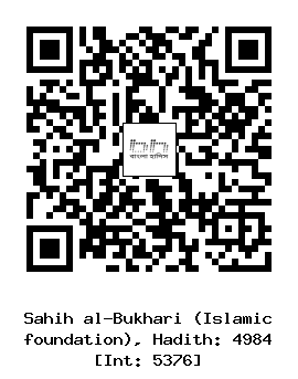 ৪৯৮৪। আলী ইবনু আবদুল্লাহ (রহঃ) ... উমর ইবনু আবূ সালামা (রাঃ) থেকে বর্ণিত। তিনি বলেনঃ আমি ছোট ছেলে হিসাবে রাসুলুল্লাহ সাল্লাল্লাহু আলাইহি ওয়াসাল্লাম এর তত্বাবধানে ছিলাম। খাবার বাসনে আমার হাত ছুটাছুটি করতো। রাসুলুল্লাহ সাল্লাল্লাহু আলাইহি ওয়াসাল্লাম আমাকে বললেনঃ হে বৎস! বিসমিল্লাহ বলে ডান হাতে আহার কর এবং তোমার কাছে থেকে খাও। এরপর থেকে আমি সব সময় এ পদ্ধতিতেই আহার করতাম। যার যার কাছ থেকে আহার করা। আনাস (রাঃ) বলেন, নবী সাল্লাল্লাহু আলাইহি ওয়াসাল্লাম বলেছেনঃ তোমরা বিসমিল্লাহ বলবে এবং প্রত্যেকে তার কাছ থেকে আহার করবে।