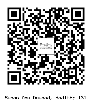 ১৩১। রুবাই’ বিনতু মু’আব্বিয (রাঃ) সূত্রে বর্ণিত। নবী সাল্লাল্লাহু আলাইহি ওয়াসাল্লাম অযু করলেন এবং উভয় কানের ছিদ্রে তাঁর হাতের দু’ আঙ্গুল প্রবেশ করালেন।[1]