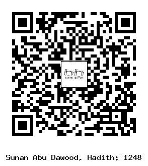 ১২৪৮। আবূ বকরাহ (রাঃ) সূত্রে বর্ণিত। তিনি বলেন, নবী সাল্লাল্লাহু আলাইহি ওয়াসাল্লাম ভয়-ভীতির সময় যুহরের সালাত আদায় করেছেন। এ সময় লোকজনের কিছু সংখ্যক তাঁর পিছনে কাতারবদ্ধ হয় এবং কিছু সংখ্যক কাতারবদ্ধ হয় শত্রুর মুকাবিলায়। অতঃপর তিনি দু’ রাক’আত সালাত আদায় করে সালাম ফিরান। তাঁর সঙ্গে সালাত আদায়কারীরা সরে গিয়ে (পিছনের) সঙ্গীদের স্থানে গিয়ে দাঁড়ালো এবং তারা এসে দাঁড়ালো তাঁর পিছনে। তিনি তাদেরকে নিয়ে দু’ রাক’আত সালাত আদায় করে সালাম ফিরালেন। ফলে রাসূলুল্লাহ সাল্লাল্লাহু আলাইহি ওয়াসাল্লাম এর হলো চার রাক’আত এবং তাঁর সাহাবীদের হলো দু’ দু’ রাক’আত। হাসান বাসরী (রহঃ) এরূপই ফাতাওয়াহ দিতেন। ইমাম আবূ দাউদ (রহঃ) বলেন, এরূপে মাগরিবের সালাতে ইমামের হবে ছয় রাক’আত এবং অন্যদের হবে তিন তিন রাক’আত।[1]