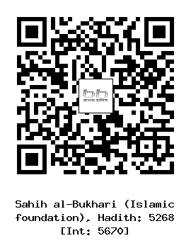 ৫২৬৮। ইবরাহীম ইবনু হামযা (রহঃ) ... সায়েব (রাঃ) থেকে বর্ণিত। তিনি বলেন, আমার খালা আমাকে রাসুলুল্লাহ সাল্লাল্লাহু আলাইহি ওয়াসাল্লাম এর কাছে নিয়ে গেলেন। এরপর তিনি বললেন ইয়া রাসুলাল্লাহ! আমর বোনের ছেলেটি অসুস্থ। তখন নবী সাল্লাল্লাহু আলাইহি ওয়াসাল্লাম আমার মাথায় হাত বুলালেন এবং আমার জন্য বরকতের দু’আ করলেন। এরপর তিনি উযূ (ওজু/অজু/অযু) করলেন। আমি তার উযূর অবশিষ্ট পানি পান করলাম এবং তার পিঠের পেছনে গিয়ে দাঁড়ালাম। তখন আমি মোহরে নবুওয়াতের দিকে তাকিয়ে দেখলাম সেটি তার দুকাঁধের মধ্যবর্তী স্থানে অবস্থিত এবং খাটিয়ার গোল ঘুন্টির মত।