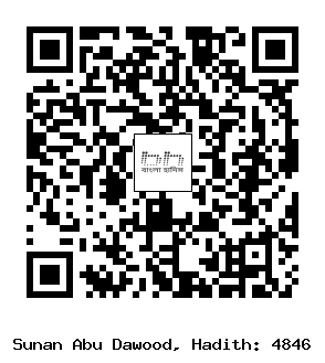 ৪৮৪৬। আবূ সাঈদ আল-খুদরী (রাঃ) সূত্রে বর্ণিত। রাসূলুল্লাহ সাল্লাল্লাহু আলাইহি ওয়াসাল্লাম তাঁর হাঁটুদ্বয় খাড়া করে তা স্বীয় হাত দ্বারা পেঁচিয়ে ধরে বসতেন। ইমাম আবূ দাঊদ (রহঃ) বলেন, আব্দুল্লাহ ইবনু ইবরাহীম হাদীস শাস্ত্রে প্রত্যাখ্যাত।[1]