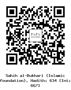 ৬৩৪। ইসমাইল (রহঃ) ... মাহমুদ ইবনু রাবী’ আল আনসারী (রাঃ) থেকে বর্ণিত, তিনি বলেন, ইতবান ইবনু মালিক (রাঃ) তাঁর নিজ গোত্রের ইমামতি করতেন। তিনি ছিলেন অন্ধ। একদিন তিনি রাসূল সাল্লাল্লাহু আলাইহি ওয়াসাল্লাম কে বললেন। ইয়া রাসূলাল্লাহ! কখনো কখনো ঘোর অন্ধকার ও বর্ষণ প্রবাহ হয়ে পড়ে। অথচ আমি একজন অন্ধ ব্যাক্তি। ইয়া রাসূলাল্লাহ! আপনি আমার ঘরে কোন একস্থানে সালাত (নামায/নামাজ) আদায় করুণ, যে স্থানটিকে আমার সালাতের স্থান হিসেবে নির্ধারন করবো। তারপর রাসূল সাল্লাল্লাহু আলাইহি ওয়াসাল্লাম তাঁর ঘরে এলেন এবং বললেনঃ আমার সালাত আদায়ের জন্য কোন জায়গাটি তুমি ভালো মনে কর? তিনি ইশারা করে ঘরের জায়গা দেখিয়ে দিলেন। রাসূল সাল্লাল্লাহু আলাইহি ওয়াসাল্লাম সেখানে সালাত আদায় করলেন।