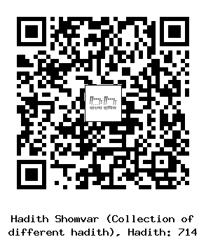 (৭১৪) উক্ত আয়েশা (রাঃ) হতেই বর্ণিত, তিনি বলেন, আল্লাহর রসূল সাল্লাল্লাহু আলাইহি ওয়াসাল্লাম বলেছেন, যে ব্যক্তি (কাতারের মাঝে) কোন ফাঁক বন্ধ করে, আল্লাহ তার বিনিময়ে তাকে একটি মর্যাদায় উন্নীত করেন এবং তার জন্য জান্নাতে এক গৃহ নির্মাণ করেন।