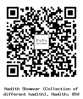(৮৫০) আবূ হুরাইরা (রাঃ) কর্তৃক বর্ণিত, রাসূলুল্লাহ সাল্লাল্লাহু আলাইহি ওয়াসাল্লাম বলেছেন, আল্লাহ বলেন, যে ব্যক্তি আমার অলীর বিরুদ্ধে শত্রুতা পোষণ করবে, আমি তার বিরুদ্ধে যুদ্ধ ঘোষণা করব। বান্দা যা কিছু দিয়ে আমার নৈকট্য লাভ করে থাকে তার মধ্যে আমার নিকট প্রিয়তম হল সেই ইবাদত, যা আমি তার উপর ফরয করেছি। আর সে নফল ইবাদত দ্বারা আমার নৈকট্য অর্জন করতে থাকে। পরিশেষে আমি তাকে ভালোবাসি।