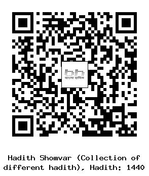 (১৪৪০) ইবনে উমার (রাঃ) কর্তৃক বর্ণিত, রাসূলুল্লাহ সাল্লাল্লাহু আলাইহি ওয়াসাল্লাম বলেছেন, অবশ্যই নামাযী তাঁর সুমহান প্রভুর কাছে মুনাজাত করে। অতএব তার লক্ষ্য করা উচিত, সে কি দিয়ে তাঁর কাছে মুনাজাত করছে। আর তোমাদের কেউ যেন অপরের কাছে উচ্চস্বরে কুরআন না পড়ে।
