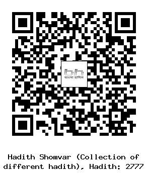 (২৭৭৭) আবূ হুরাইরা (রাঃ) কর্তৃক বর্ণিত, নবী সাল্লাল্লাহু আলাইহি ওয়াসাল্লাম বলেছেন, যখন তোমাদের কোন ব্যক্তির খাদেম (দাস-দাসী) তার নিকট খাবার নিয়ে আসে, তখন যদি তাকে নিজ সঙ্গে (খেতে) না বসায়, তাহলে সে যেন তাকে (কমপক্ষে তার হাতে) এক খাবল বা দু’ খাবল অথবা এক গ্রাস বা দু’ গ্রাস (ঐ খাবার থেকে) তুলে দেয়। কেননা, সে (খাদেম) তা পাক (করার যাবতীয় কষ্ট বরণ) করেছে।