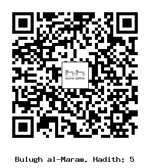 ৫। আবদুল্লাহ বিন ’উমার (রাঃ) থেকে বৰ্ণিত। তিনি বলেন, আল্লাহর রসূল সাল্লাল্লাহু আলাইহি ওয়াসাল্লাম বলেছেনঃ ’পানির পরিমাণ যদি দু’ কুল্লা (কুল্লা হচ্ছে বড় আকারের মাটির পাত্র বিশেষ যাতে প্রায় একশত তের কেজি পানি আটে) (মটকা) হয় তবে তার মধ্যে কোন অপবিত্র বস্তু পড়লে তা না-পাক হবে না’। (চারজনে এটি বর্ণনা করেছেন এবং ইবনু খুযাইমাহ ও ইবনু হিব্বান এক সহীহ বলেছেন।[1]