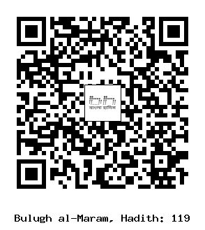 ১১৯। ’আয়িশা (রাঃ) থেকে বর্ণিত হয়েছে, তিনি বলেন, ’আল্লাহর রসূল সাল্লাল্লাহু আলাইহি ওয়াসাল্লাম যখন ফরয গোসল করতেন তখন প্রথমে দু’ হাত ধুয়ে নিতেন। অতঃপর তাঁর ডান হাত দ্বারা বাম হাতে পানি ঢেলে তাঁর গুপ্তাঙ্গ ধৌত করতেন। তারপর উযূ করতেন। তারপর গোসলের জন্য পানি নিতেন এবং হাতের আঙ্গুলসমূহ মাথার চুলের গোড়ায় প্রবেশ করাতেন। তারপর তাঁর মাথায় তিন আঁজলা পানি ঢালতেন। তারপর সমস্ত শরীরে পানি বইয়ে ধুতেন, তারপর পা ধুতেন’। মুক্তাফাকুন আলাইহি। আর শব্দ বিন্যাস মুসলিমের।[1]