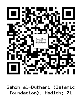 ৭১। সাঈদ ইবনু উফায়র (রহঃ) ... হুমায়দ ইবনু আবদুর রহমান (রহঃ) থেকে বর্ণিত, তিনি বলেনঃ আমি মু’আবিয়া (রাঃ)–কে বক্তৃতারত অবস্থায় বলতে শুনেছি, তিনি বলেন, আমি রাসুলুল্লাহ সাল্লাল্লাহু আলাইহি ওয়াসাল্লামকে বলতে শুনেছি, আল্লাহ্ যার কল্যাণ চান, তাকে দ্বীনের জ্ঞান দান করেন। আমি তো কেবল বিতরণকারী, আল্লাহ্ই দানকারী। সর্বদাই এ উম্মাত (সত্যিকারের মুসলিম) কিয়ামত পর্যন্ত আল্লাহ্ হুকুমের উপর প্রতিষ্টিত থাকবে, বিরুদ্ধবাদীরা তাদের কোন ক্ষতি করতে পারবে না।