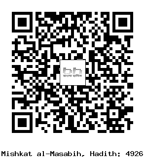 ৪৯২৬-[১৬] ’আয়িশাহ্ (রাঃ) হতে বর্ণিত। তিনি বলেন, রসূলুল্লাহ সাল্লাল্লাহু আলাইহি ওয়াসাল্লাম বলেছেনঃ আমি জান্নাতে প্রবেশ করলাম এবং এতে কুরআন পাঠ করতে শুনলাম। আমি জিজ্ঞেস করলামঃ এ ব্যক্তি কে? মালায়িকাহ্ (ফেরেশতাগণ) বললেনঃ হারিসাহ্ ইবনু নু’মান (রাঃ)। এটা শুনে সাহাবায়ি কিরামের মনে প্রশ্ন জাগল, হারিসাহ্ কিভাবে এত মর্যাদা লাভ করল? তিনি (সাল্লাল্লাহু আলাইহি ওয়াসাল্লাম) বললেনঃ পুণ্যের প্রতিফল এরূপই, পুণ্যের প্রতিফল এরূপই। সে তার মায়ের সাথে সকল মানুষের তুলনায় সর্বোত্তম সদাচরণ করত। (শারহুস্ সুন্নাহ্ ও বায়হাক্বী’র ’’শু’আবুল ঈমানে’’ বর্ণনা করেছেন)[1]