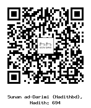 ৬৯৪. খুযাইমাহ ইবনু ছাবিত আল আনসারী তার পিতা (ছাবিত) রাদ্বিয়াল্লাহু আনহু হতে বর্ণনা করেন, তিনি বলেন, রাসূলুল্লাহ সাল্লাল্লাহু আলাইহি ওয়া সাল্লাম (ইস্তিনজার সময় কয়টি পাথর ব্যবহার করা উচিত- এ মর্মে জিজ্ঞাসিত হয়ে) বলেছেন: তিনটি পাথর, যার মধ্যে গোবর থাকবে না। এর অর্থ: পবিত্রতা অর্জনের জন্য।[1]