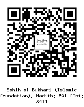 ৮০১। ইসহাক ইবনু নাসর (রহঃ) ... ইবনু আব্বাস (রাঃ) থেকে বর্ণিত, তিনি বর্ণনা করেন যে, নবী সাল্লাল্লাহু আলাইহি ওয়াসাল্লাম এর সময় মুসল্লিগণ ফরয সালাত (নামায/নামাজ) শেষ হলে উচ্চস্বরে যিকর করতেন। ইবনু আব্বাস (রাঃ) বলেন, আমি এরূপ শুনে বুঝলাম, মুসল্লিগণ সালাত শেষ করে ফিরছেন।