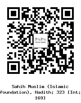 ৩২৩। মুহাম্মাদ ইবনু ইসহাক আল মূসায়্যাবী (রহঃ) ... আবদুল্লাহ ইবনু উমর (রাঃ) থেকে বর্ণিত যে, তিনি বলেন, একদা রাসুলুল্লাহ সাল্লাল্লাহু আলাইহি ওয়াসাল্লাম তাঁর সাহাবীদের সম্মুখে দাজ্জালের কথা উল্লেখ করে বললেনঃ অবশ্যই আল্লাহ তা’আলা টেরাচোখবিশিষ্ট নন। জেনে রাখ, দাজ্জালের ডান চোখ টেরা, যেন থোকা থেকে উঠে আসা একটি আঙুর। ইবনু উমর (রাঃ) বলেন, রাসুলুল্লাহ সাল্লাল্লাহু আলাইহি ওয়াসাল্লাম ইরশাদ করেছেনঃ একবার আমি স্বপ্নে আমাকে কা’বা শরীফের কাছে পেলাম। তখন গৌরবর্ণের এক ব্যাক্তিকে দেখলাম। এ বর্ণের তোমরা যত লোক দেখেছ, তিনি ছিলেন তাদের মধ্যে সবচেয়ে সুন্দর। কেশ তাঁর গ্রীবার উপর ঝুলছিল। তার কেশ গুলো ছিল সোজা। তা থেকে তখন পানি ঝরছিল। তিনি দুব্যাক্তির কাঁধে হাত রেখে বায়তুল্লাহ তাওয়াফ করছিলেন। জিজ্ঞেস করলামঃ ইনি কে? বলা হল, ইনি মাসীহ ইবনু মারইয়াম। তাঁরই পেছনে দেখলাম আরেক ব্যাক্তি, ঘন কোকড়ানো চুল। তার ডান চোখ ছিল টেরা। সে দেখতে ছিল ইবনু কাতানের মত। সেও দু’ ব্যাক্তির কাঁধে হাত রেখে বায়তুল্লাহর তাওয়াফ করছে। জিজ্ঞেস করলামঃ এ কে? বলা হল, মাসীহুদ দাজ্জাল।