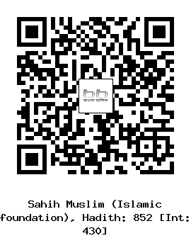৮৫২। আবূ বকর ইবনু আবূ শায়বা ও আবূ কুরায়ব (রহঃ) ... জাবির ইবনু সামুরা (রাঃ) থেকে বর্ণিত যে, তিনি বলেন, রাসুলুল্লাহ সাল্লাল্লাহু আলাইহি ওয়াসাল্লাম আমাদের নিকট আগমন করে বললেন, তোমরা চঞ্চল ঘোড়ার লেজের মত হাত উঠাচ্ছ কেন? সালাত (নামায/নামাজ)-এর মধ্যে স্থির থাকবে। একবার তিনি আমাদেরকে দলে দলে বিভক্ত দেখে বললেন, তোমরা পৃথক পৃথক রয়েছ কেন? আরেকবার আমাদের সামনে এসে বললেন, তোমরা এমনভাবে কাতার বাধবে, যেমনিভাবে ফেরেশতাগণ তাদের রবের সামনে কাতারবন্দী হয়ে থাকেন। আমরা বললাম, ইয়া রাসুলাল্লাহ! ফেরেশতাগণ তাঁদের রবের সামনে কীভাবে কাতারবন্দী হন? তিনি বললেন, ফেরেশতাগণ সামনের কাতারগুলী আগে পূর্ণ করেন এবং গায়ে গায়ে লেগে দাঁড়ান।