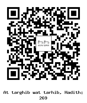২৬৯. (সহীহ্) আবু যার (রাঃ) থেকে বর্ণিত। তিনি বলেনঃ রাসূলুল্লাহ্  (সাল্লাল্লাহু আলাইহি ওয়া সাল্লাম) বলেছেনঃ ’’যে ব্যাক্তি আল্লাহর ওয়াস্তে পাখির বাসার ন্যায় (অর্থাৎ ছোট আকারে) একটি মসজিদ তৈরী করবে, আল্লাহ তার জন্যে জান্নাতে একটি ঘর তৈরী করবেন।’’