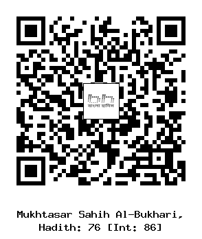৭৬) আসমা বিনতে আবু বকর (রাঃ) হতে বর্ণিত, তিনি বলেনঃ আমি আয়েশা (রাঃ)এর নিকট আগমণ করলাম। তখন তিনি নামাযরত ছিলেন। আমি তাঁকে জিজ্ঞেস করলামঃ মানুষের কী অবস্থা? অর্থাৎ তারা পেরেশান কেন? তিনি আকাশের দিকে ইশারা করলেন। অর্থাৎ তিনি দেখালেন যে, সূর্যগ্রহণ লেগেছে। তখন দেখতে পেলাম সকল মানুষই নামায অবস্থায় আছেন। অতঃপর তিনি সুবহানাল্লাহ বললেন। আমি বললামঃ এটি কি কোন আযাবের নিদর্শন। আয়েশা (রাঃ) মাথা দ্বারা হ্যাঁ সূচক ইঙ্গিত করলেন। অতঃপর আমি তাদের সাথে নামাযে দাঁড়িয়ে গেলাম। দীর্ঘক্ষণ দাঁড়িয়ে থাকার কারণে আমি বেহুশ হয়ে যাওয়ার উপক্রম হলাম। আমি আমার মাথায় পানি ঢালতে লাগলাম। নামায শেষ হলে নবী সাল্লাল্লাহু আলাইহি ওয়া সাল্লাম আল্লাহর প্রশংসা করলেন এবং তাঁর গুণাবলী বর্ণনা করলেন।