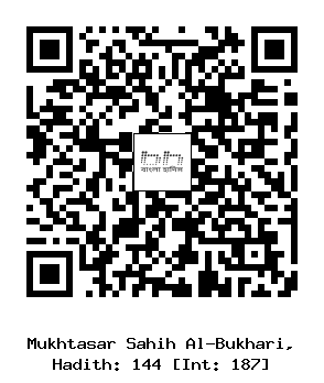 ১৪৪) আবু জুহায়ফা (রাঃ) হতে বর্ণিত, তিনি বলেনঃ একদা রাসূল সাল্লাল্লাহু আলাইহি ওয়া সাল্লাম দুপুরের সময় আমাদের এলাকায় আগমণ করলেন। এ সময় তাঁর জন্য অযুর পানি আনা হলে তা দিয়ে তিনি অযু করলেন। মানুষেরা তার অযুর অতিরিক্ত পানি নিয়ে শরীর মাসেহ করতে লাগল। অযু শেষে নবী সাল্লাল্লাহু আলাইহি ওয়া সাল্লাম যোহরের নামায দু’রাকআত এবং আসরের নামায দু’রাকআত তথা কসর করে আদায় করলেন। তাঁর সামনে ছিল ছোট একটি লাঠি, (যা তিনি সুতরা হিসাবে ব্যবহার করেছিলেন)।
