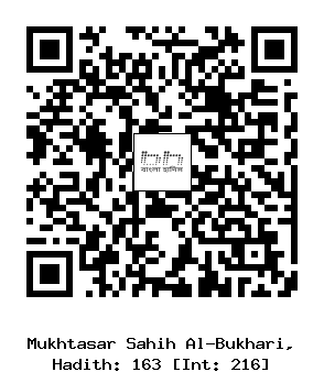 ১৬৩ـ عَنِ ابْنِ عَبَّاسٍ رَضِيَ الله عَنْهُمَا قَالَ: مَرَّ النَّبِيُّ بِحَائِطٍ مِنْ حِيطَانِ الْمَدِينَةِ أَوْ مَكَّةَ، فَسَمِعَ صَوْتَ إِنْسَانَيْنِ يُعَذَّبَانِ فِي قُبُورِهِمَا، فَقَالَ النَّبِيُّ يُعَذَّبَانِ وَمَا يُعَذَّبَانِ فِي كَبِيرٍ. ثُمَّ قَالَ بَلَى، كَانَ أَحَدُهُمَا لا يَسْتَتِرُ مِنْ بَوْلِهِ، وَكَانَ الآخَرُ يَمْشِي بِالنَّمِيمَةِ. ثُمَّ دَعَا بِجَرِيدَةٍ رَطْبَةٍ، فَكَسَرَهَا كِسْرَتَيْنِ، فَوَضَعَ عَلَى كُلِّ قَبْرٍ مِنْهُمَا كِسْرَةً، فَقِيلَ لَهُ: يَا رَسُولَ اللَّهِ، لِمَ فَعَلْتَ هَذَا؟ قَالَ لَعَلَّهُ أَنْ يُخَفَّفَ عَنْهُمَا مَا لَمْ يَيْبَسَا. (بخارى:২১৬)
