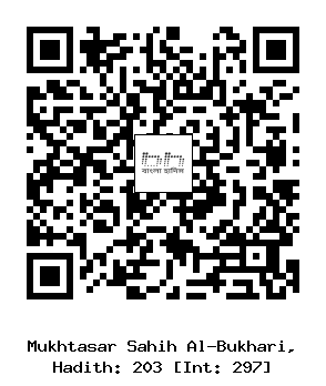 ২০৩) আয়েশা (রাঃ) হতে বর্ণিত, তিনি বলেনঃ আমার হায়েয (মাসিক) থাকা অবস্থায় নবী সাল্লাল্লাহু আলাইহি ওয়া সাল্লাম (কখনও কখনও) আমার কোলে হেলান দিয়ে কুরআন তেলাওয়াত করতেন।