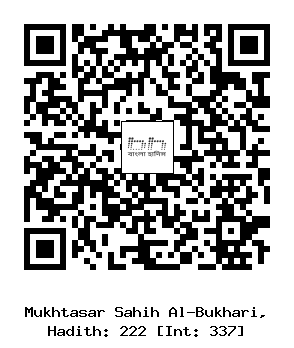 ২২২) আবু জুহাইম বিন হারেছ আনসারী (রাঃ) হতে বর্ণিত, তিনি বলেনঃ একদা নবী সাল্লাল্লাহু আলাইহি ওয়া সাল্লাম ‘বি’রে জামাল’ নামক স্থান থেকে আগমণ করলেন। এ সময় তাঁর সাথে এক ব্যক্তির সাক্ষাৎ হল। সে নবী সাল্লাল্লাহু আলাইহি ওয়া সাল্লামকে সালাম দিল। তিনি সালামের জবাব না দিয়ে একটি দেয়ালের দিকে গেলেন। দেয়ালে হাত মেরে মুখমণ্ডল এবং উভয় হাত মাসেহ করলেন। অতঃপর সালামের উত্তর দিলেন।