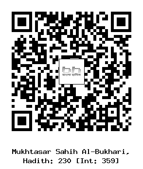 ২৩০) আবু হুরায়রা (রাঃ) হতে বর্ণিত, তিনি বলেনঃ নবী সাল্লাল্লাহু আলাইহি ওয়া সাল্লাম বলেনঃ তোমাদের কেউ যেন এক কাপড় পরিধান করে নামায না পড়ে, যার কিছু অংশ উভয় কাঁধের উপর রাখা হয়নি।