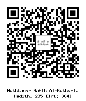 ২৩৫) জাবের বিন আব্দুল্লাহ (রাঃ) হতে বর্ণিত, তিনি বর্ণনা করতেন যে, রাসূল সাল্লাল্লাহু আলাইহি ওয়া সাল্লাম কাবা ঘর নির্মাণের সময় সকলের সাথে পাথর বহন করছিলেন। তাঁর পরনে ছিল লুঙ্গি। তাঁর চাচা আব্বাস (রাঃ) তাঁকে বললেনঃ হে ভাতিজা! তুমি যদি লুঙ্গি খুলে তা কাঁধের উপর পাথরের নীচে রাখতে তাহলে খুব ভাল হত। চাচার কথায় তিনি লুঙ্গি খুলে দু’কাঁধের উপর রাখা মাত্রই বেহুশ হয়ে পড়ে গেলেন। এরপর তাঁকে আর কখনও উলঙ্গ অবস্থায় দেখা যায়নি।