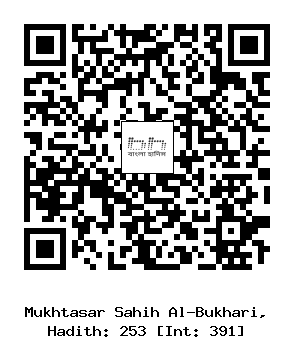 ২৫৩) আনাস বিন মালেক (রাঃ) হতে বর্ণিত, তিনি বলেনঃ রাসূল সাল্লাল্লাহু আলাইহি ওয়া সাল্লাম বলেছেনঃ যে ব্যক্তি আমাদের ন্যায় নামায আদায় করবে এবং আমাদের কিবলার দিকে মুখ করবে এবং আমাদের যবেহকৃত গোশত ভক্ষণ করবে সে মুসলিম হিসেবে গণ্য হবে। তার জন্য আল্লাহ এবং তাঁর রাসূলের পক্ষ হতে নিরাপত্তার প্রতিশ্রুতি রয়েছে। সুতরাং তোমরা আল্লাহর প্রতিশ্রুতি ভঙ্গ করোনা।