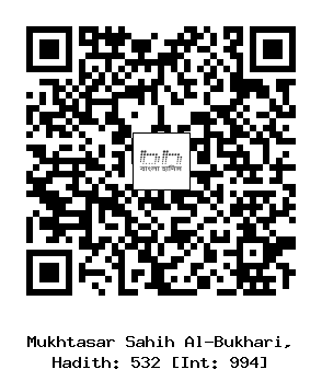 ৫৩২) আয়েশা (রাঃ) হতে বর্ণিত, তিনি বলেনঃ রাসূল সাল্লাল্লাহু আলাইহি ওয়া সাল্লাম এগার রাকআত পড়তেন। এটিই ছিল তাঁর রাতের নামায। তাতে মাথা উঠানোর পূর্বে তিনি সিজদাহ এত লম্বা করতেন যে, তোমাদের কেউ পঞ্চাশ আয়াত পর্যন্ত পড়তে পারত। তিনি ফজরের নামাযের পূর্বে দু’রাকআত সুন্নাত নামায পড়তেন। অতঃপর মুআয্যিন এসে নামাযের জন্য আহবান করার পূর্ব পর্যন্ত ডান কাতে শুয়ে তিনি বিশ্রাম নিতেন।