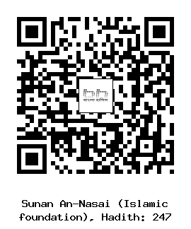 ২৪৭। ইসহাক ইবনু ইবরাহীম (রহঃ) ... আবূ সালামাহ ইবনু আবদুর রহমান (রহঃ) থেকে বর্ণিত। তিনি বলেনঃ আয়িশা (রাঃ) রাসুলুল্লাহ সাল্লাল্লাহু আলাইহি ওয়াসাল্লাম এর জানাবাতের গোসলের বর্ণনা প্রসঙ্গে বলেন যে, তিনি উভয় হাত তিনবার ধৌত করতেন এবং যে সকল স্থানে নাপাকী লেগেছে তা ধুতেন। উমর ইবনু যায়িদ বলেনঃ আমি তাঁকে [বর্ণনাকারী ’আতা ইবনু সায়িব (রহঃ) কে] এ ব্যতীত আর কিছু বলতে শুনিনি। তিনি বলেছেন যে, তিনি ডান হাতে বাম হাতের উপর তিন বার পানি ঢালতেন এবং তিনবার কুলি করতেন। আর তিনবার নাকে পানি দিতেন আর তাঁর চেহারা ও দু’হাত তিন বার ধুয়ে ফেলতেন। তারপর মাথায় তিনবার পানি ঢালতেন। পরিশেষে তাঁর সর্বাঙ্গে পানি ঢালতেন।
